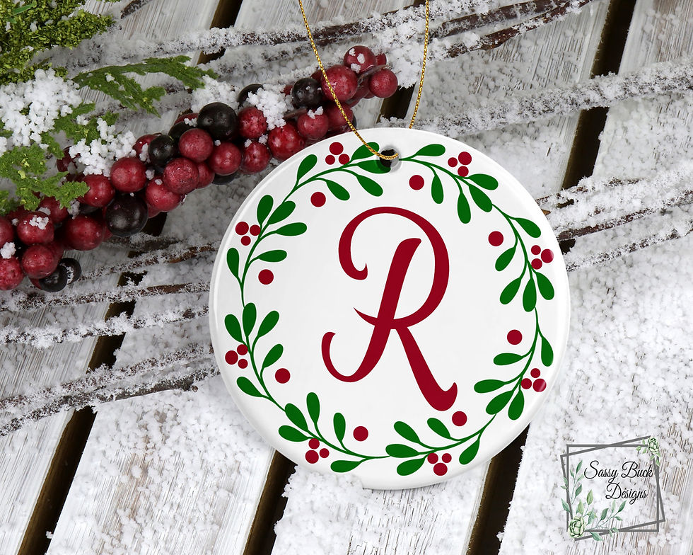 Holly Wreath Initial Ornament